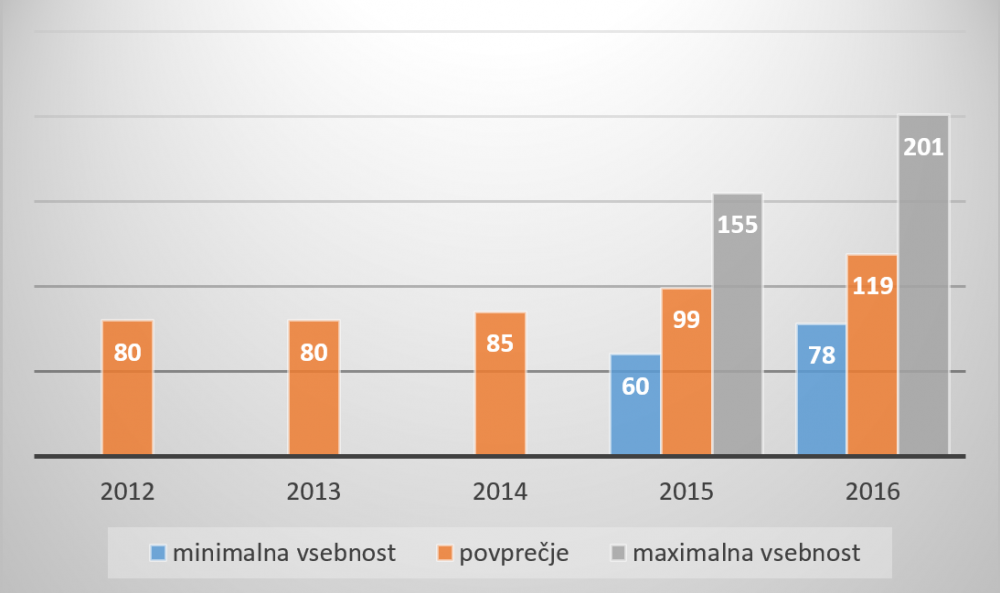 Povprečje vsebnosti MDMA-ja v tabletah ekstazija nedvomno raste in s tem pa tudi najvišja vsebnost MDMA-ja v eni tabletki, kar je prestavljeno v spodnjem grafu. Lani je bila najvišja vsebnost MDMA-ja med vzorci ekstazijev, prejetimi v Nacionalni forenzični laboratorij, 201 mg, povprečje pa 119 mg/tabletka. V rasti je tudi sama pojavnost MDMA-ja v ekstazijih.