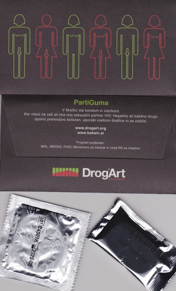 Poleg kondomov na terenu delimo tudi partygume, to so majhni paketi kondoma in lubrikanta. Marsikdaj se zgodi, da lubrikant žurerji in žurerke zavrnejo, češ, da ga ne potrebujejo. Vendar pa lubrikant ni obvezna oprema le za analni seks, temveč tudi za vaginalnega. Tudi lubrikant je obvezna oprema pri zaščiti pred okužbami, saj preprečuje poškodbe tkiva. Ob drgnjenju »na suho« je namreč večja verjetnost za nastanek majhnih ran, skozi katere lahko v naše telo vstopijo različne bakterije in virusi. Na izsušenost sluznice in zakrčenost mišic vpliva tudi alkohol ali droge, pa tudi kontracepcijske tabletke in še nekateri drugi faktorji. Naj omenimo še to, da določene droge izničijo delovanje kontracepcijskih tabletk. Naj bo lateks obvezen dresscode na afterju!
