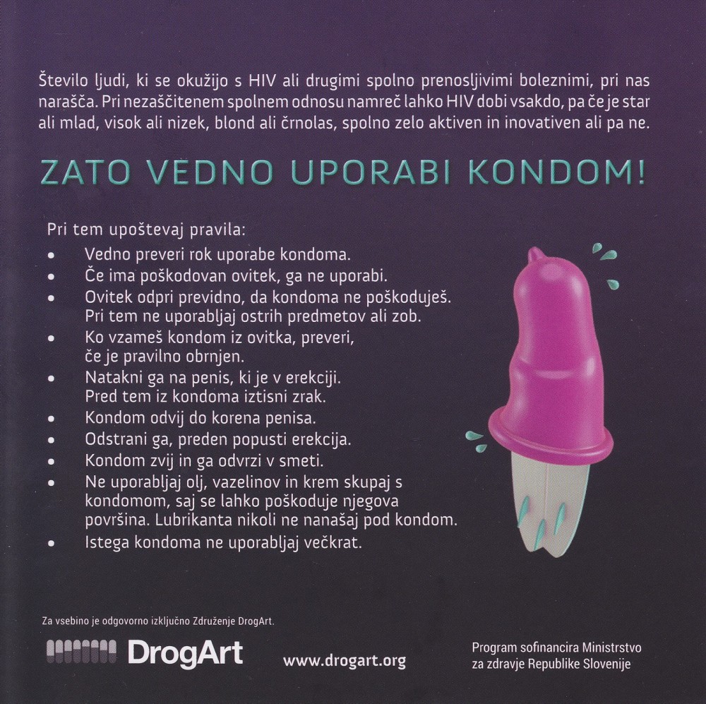 Medtem, ko sicer res obstaja cela vrsta različnih kontracepcijskih sredstev, moramo vedeti, da je kondom edini, ki nas ščiti pred spolno prenosljivimi okužbami. Pri nezaščitenem seksu ni edino tveganje le nezaželen naraščaj, temveč tudi bolezni, kot so HIV, hepatitisi, klamidija, gonoreja, sifilis, sramne uši… In vse te nam lahko povzročijo kup preglavic. Seks in spolno prenosljive okužbe v družbi še vedno ostajajo tabu in o njih se ne govori dovolj odprto. Morda tudi zato marsikdo ne prepozna simptomov in ne pozna svojega statusa. Tako, kot pravi slogan našega projekta »HIV ni izbirčen« res velja, da se lahko okužba zgodi vsakomur izmed nas – tudi pri samo enem seksu na hitro!